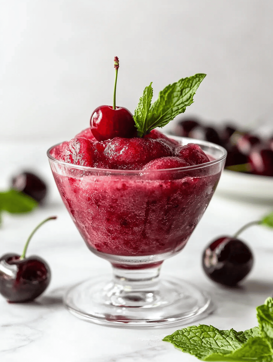 5. Garnish with a sprig of mint or a few whole cherries for a colorful presentation.