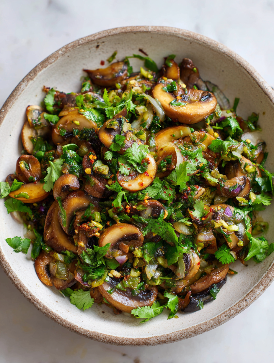 This mushroom bhaji isn’t just about earthy flavors; it’s about the quiet joy of turning humble ingredients into something memorable. The smoky aroma, tender mushrooms, and bright herbs make it feel like a small celebration in every bite.