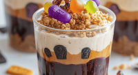 - Chaotic glue of melted chocolate and edible webs sparks nostalgic Halloween memories.
