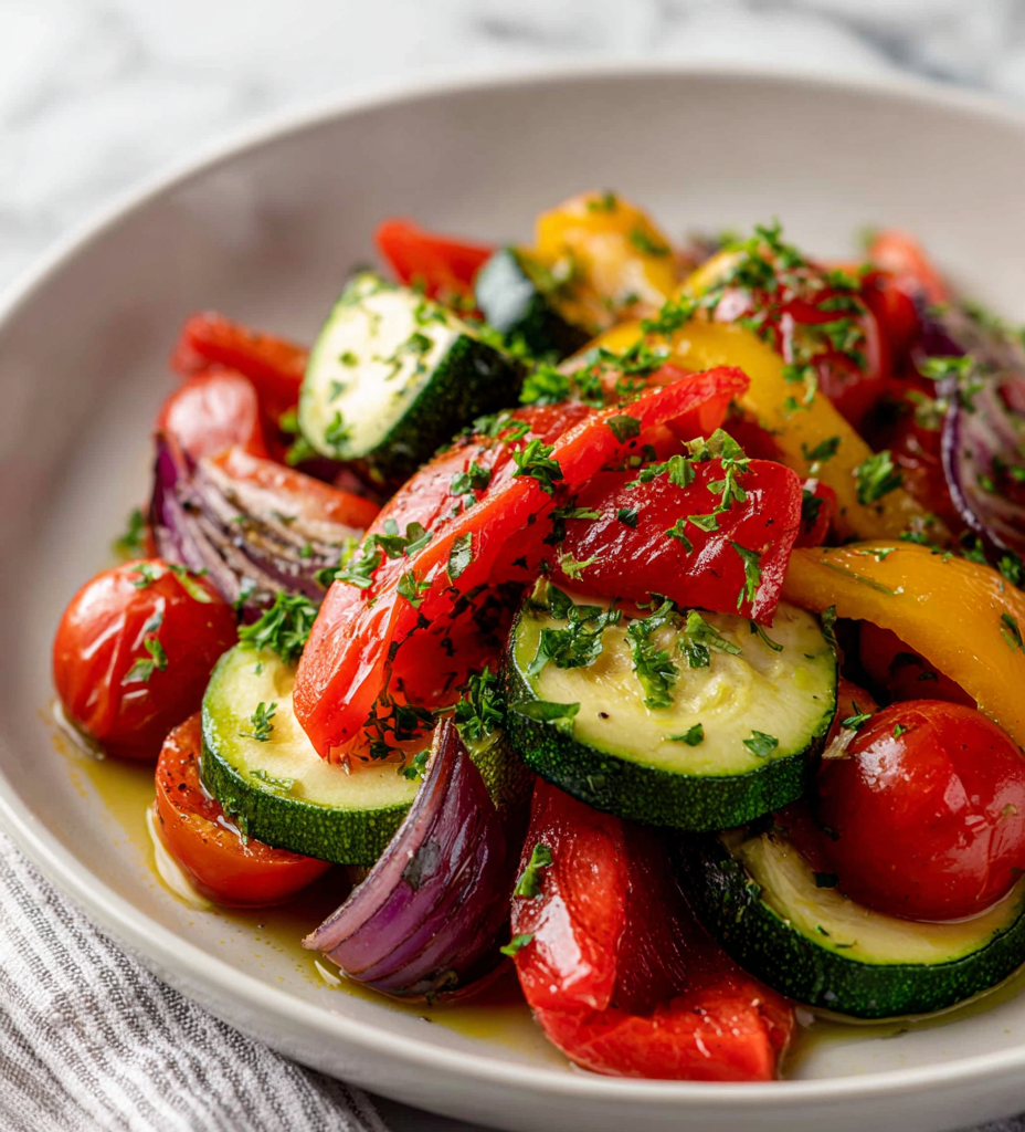 - Squeeze fresh lemon juice over the vegetables to brighten the flavors, then sprinkle with chopped fresh herbs like basil or thyme.