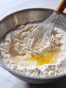 Step 1: Start by mixing warm water, a pinch of sugar, and yeast. Let it sit until frothy, about 10 minutes.