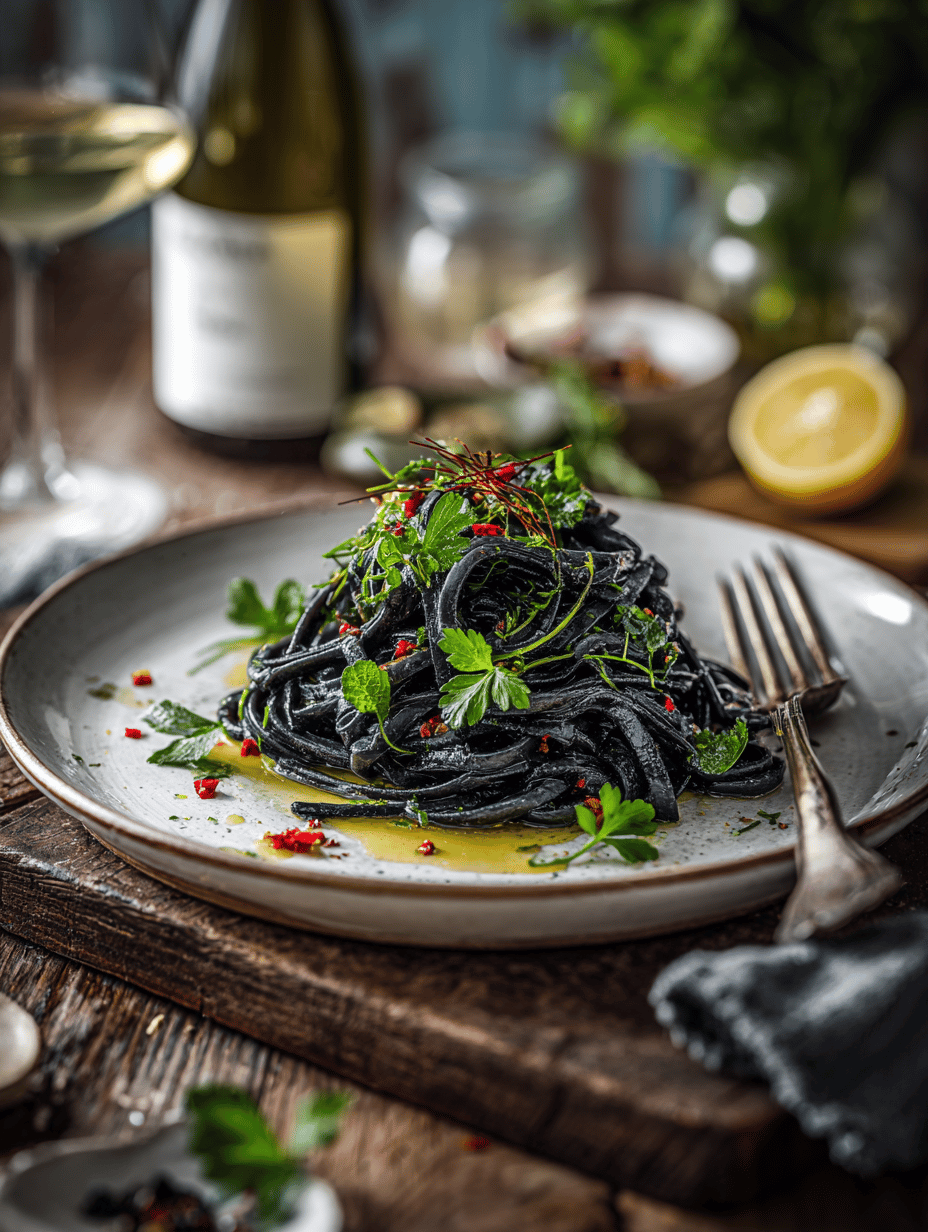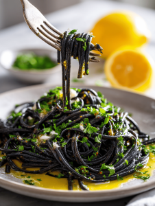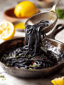 • Lemon: Brightens the dish, cuts through the ink’s richness with a zesty shimmer.