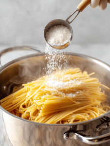 Step 1: Fill a large pot with water, add a generous pinch of salt, and bring to a rolling boil at 100°C / 212°F.