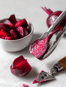 Step 3: Let the beets cool slightly, then peel and chop into small chunks.