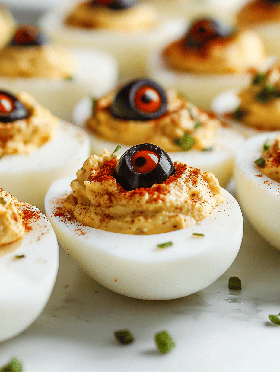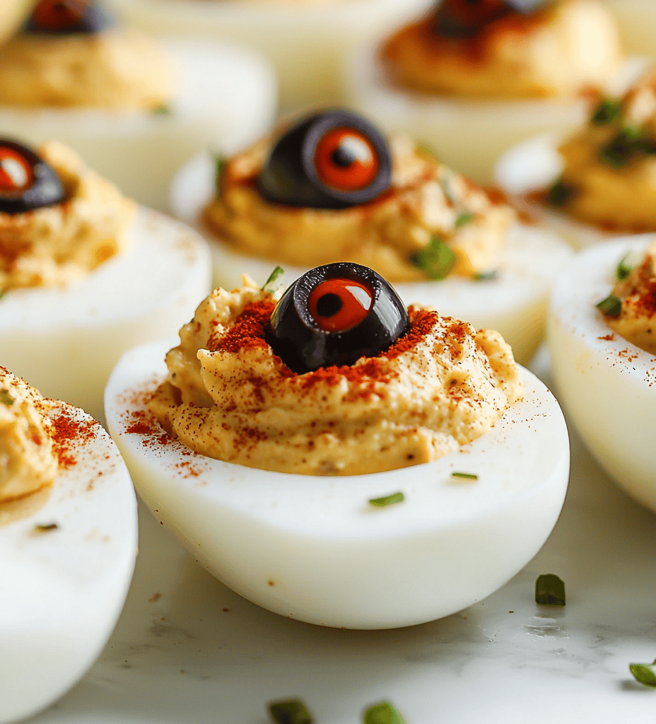 As October nights grow darker, these creepy little eyeballs perfectly match the spooky season’s energy. They turn simple deviled eggs into a delightfully grotesque treat, perfect for Halloween parties or just a mischievous snack.
