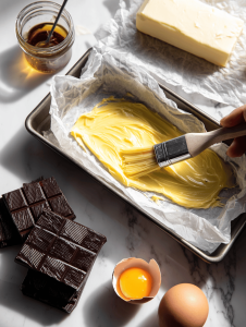 1. Preheat your oven to 180°C (350°F). Grease your baking pan with butter and line it with parchment paper for easy removal.