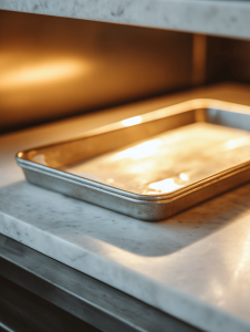 - Preheat your oven to 220°C (430°F) and place your baking sheet or pizza stone inside to heat up.