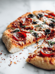 - Finish with a light sprinkle of chili flakes if you like a spicy kick, and slice the pizza with a sharp cutter or pizza wheel.