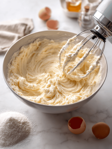 - In a large mixing bowl, beat softened butter and granulated sugar together until creamy and light, about 2-3 minutes. The mixture should be fluffy and pale in color.