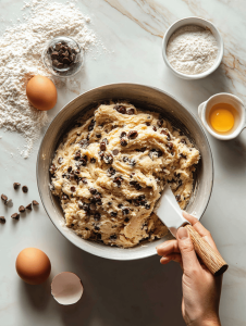 - Stir in dark chocolate chips, distributing them evenly throughout the dough for gooey bursts of chocolate in each cookie.