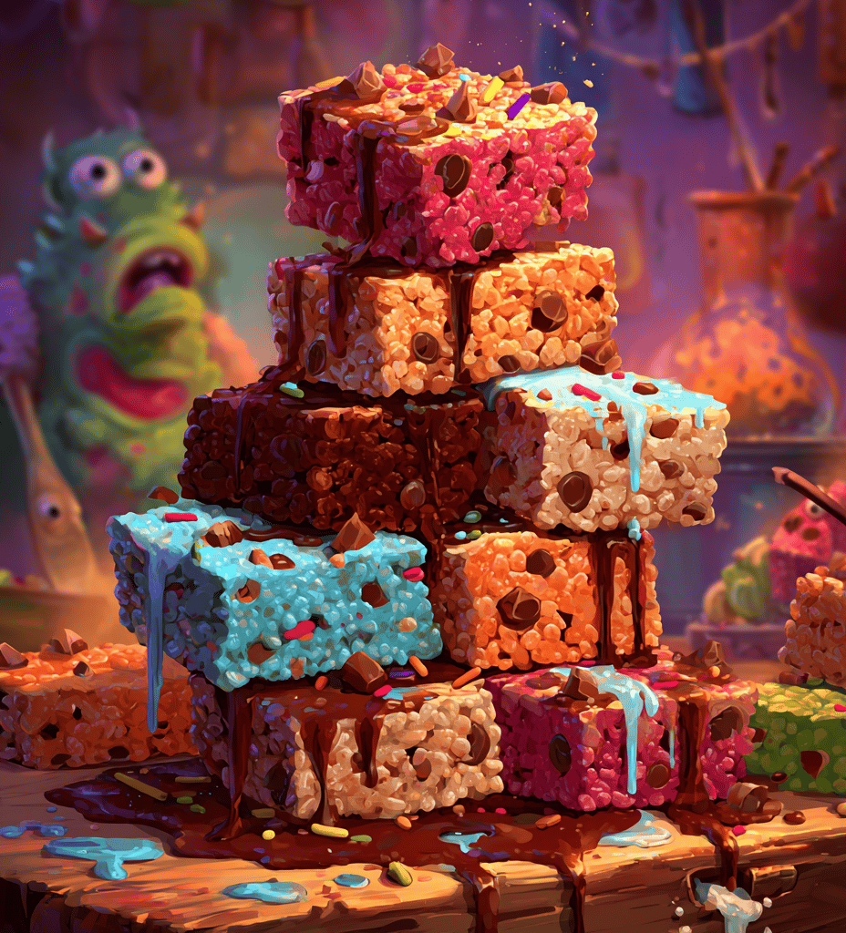 These monster rice krispie treats started as a way to tame the chaos of leftover cereal and marshmallows. I wanted something that felt a little rebellious, a little over-the-top—like the treats you’d sneak into a movie theater or find at a carnival. They’re chewy, crunchy, and just a little bit wild, perfect for when you need a sweet, no-fuss snack.