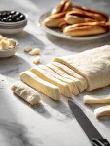 Step 3: Slice bread dough into strips about 1 inch thick.