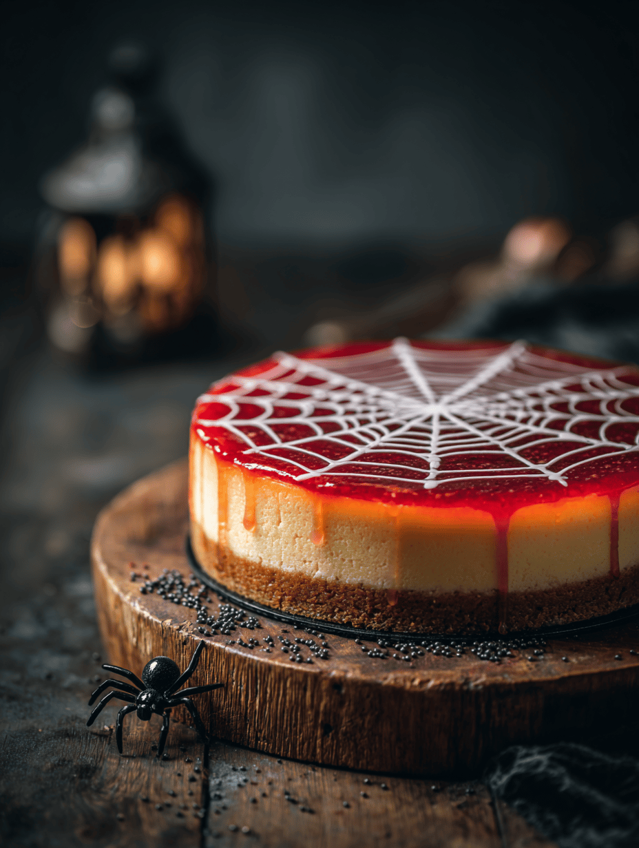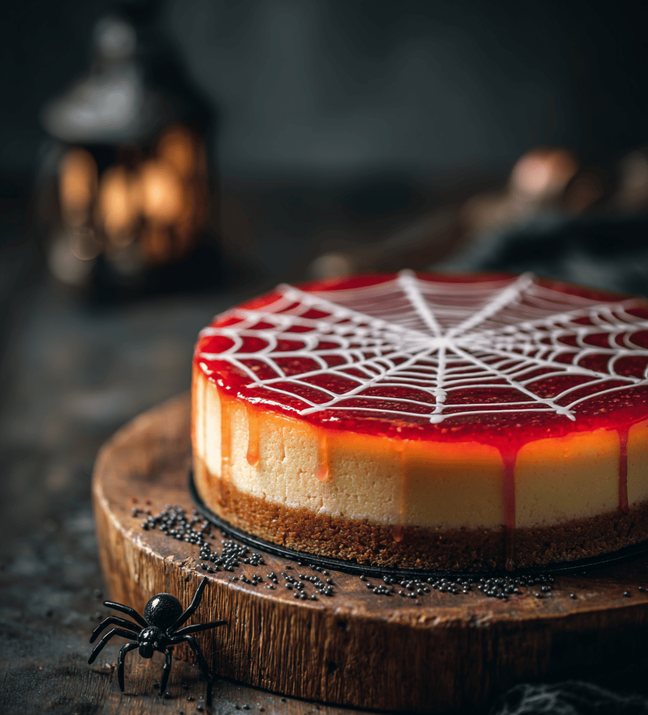 I love how a simple cheesecake can turn into a work of art with just a little extra effort. This spiderweb version is a playful twist on a classic, adding a spooky, intricate design that’s surprisingly easy to do. It’s a reminder that desserts don’t always have to be perfect—sometimes, a little chaos makes them more memorable.