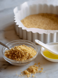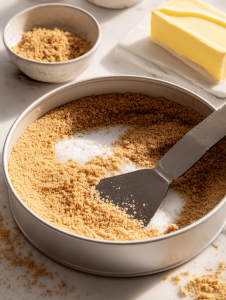 Step 2: Mix crushed graham crackers with melted butter until crumbly.