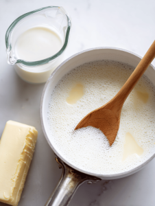 - Warm the milk and melt the butter together until just warm and combined, about 40°C (105°F), filling your kitchen with a cozy aroma.