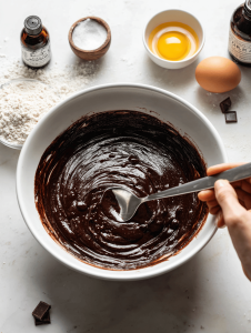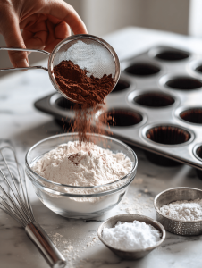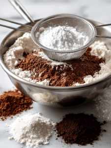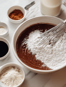 Step 3: Mix the dry ingredients: flour, cocoa powder, baking soda, salt.
