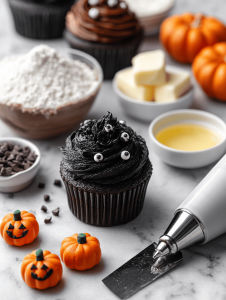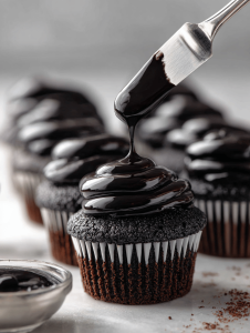 - Once cooled, frost the cupcakes with a glossy black or dark chocolate icing to enhance their creepy, haunting look.