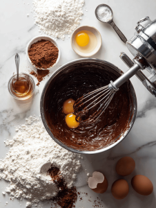 - In a large mixing bowl, sift together the flour, cocoa powder, baking soda, and salt, creating a smooth, uniform mixture.