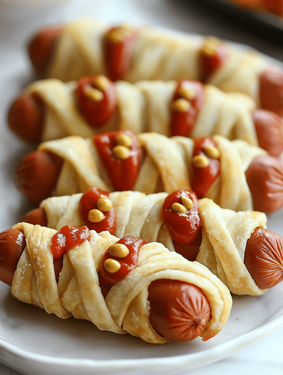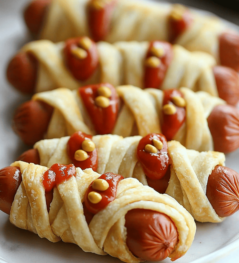 What makes this recipe special isn’t just its fun looks—it’s how quickly it comes together. The smell of crispy pastry wrapped around savory hot dogs fills the kitchen with a comforting, nostalgic aroma. It’s a perfect project for a chaotic but joy-filled Halloween afternoon with friends or family.