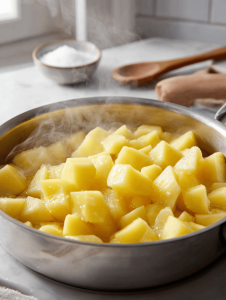 - Preheat your oven to 200°C (390°F). Start by peeling and chopping the potatoes into even chunks, then boil them in a large pot of salted water until tender, about 15 minutes. Once cooked, drain and set aside.
