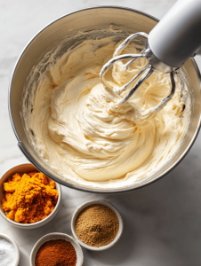 Step 4: In a mixing bowl, blend softened cream cheese with pumpkin puree, sugar, eggs, and warm spices. Mix until smooth.