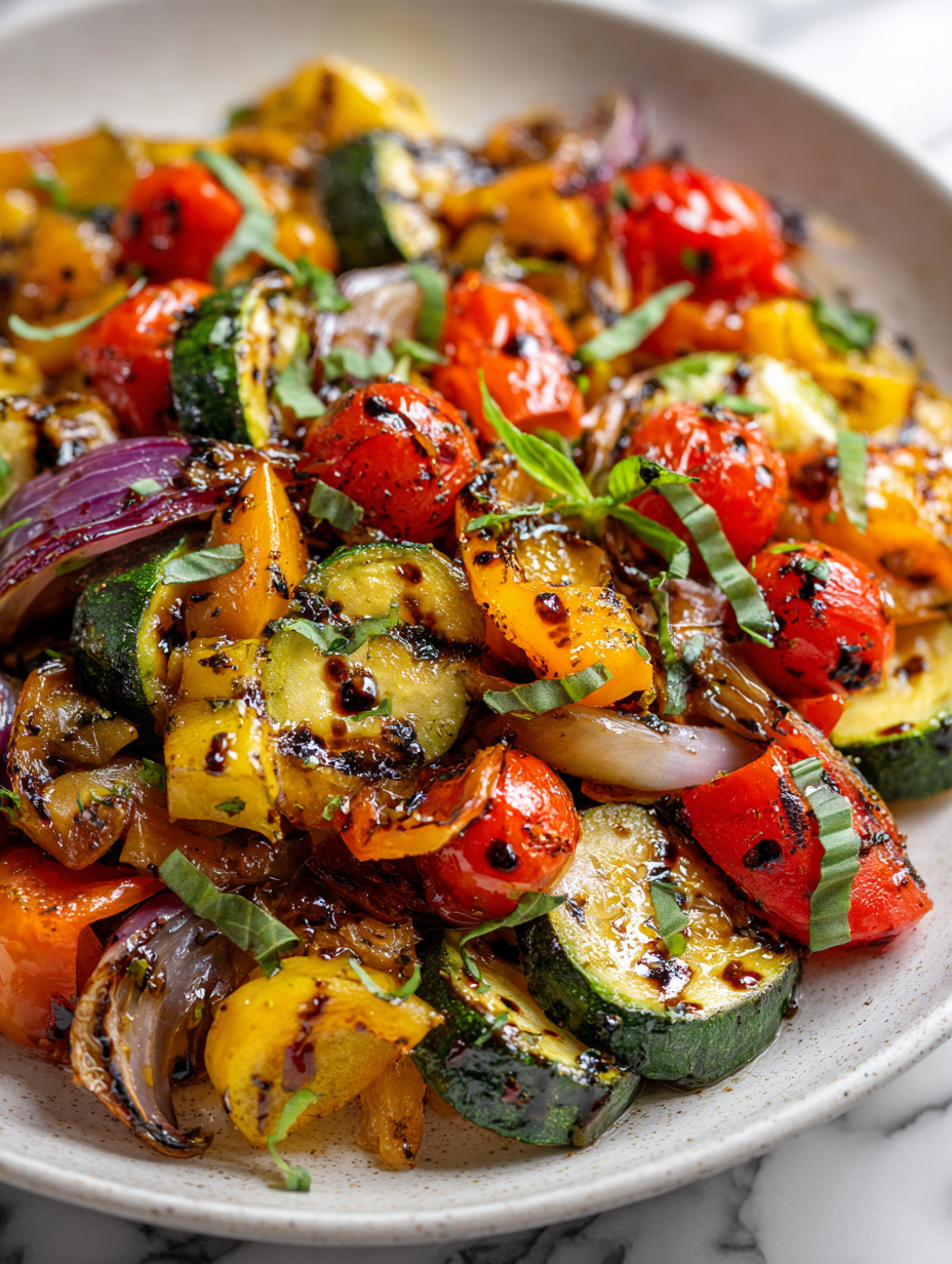 Choose firm, colorful vegetables with good natural sweetness—zucchini, peppers, sweet potato—and chop into uneven, rustic pieces.